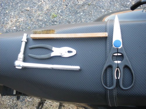 今回使った工具を並べました。ソケットレンチは何かと便利です。これだけの工具と手間と金額で交換できるので